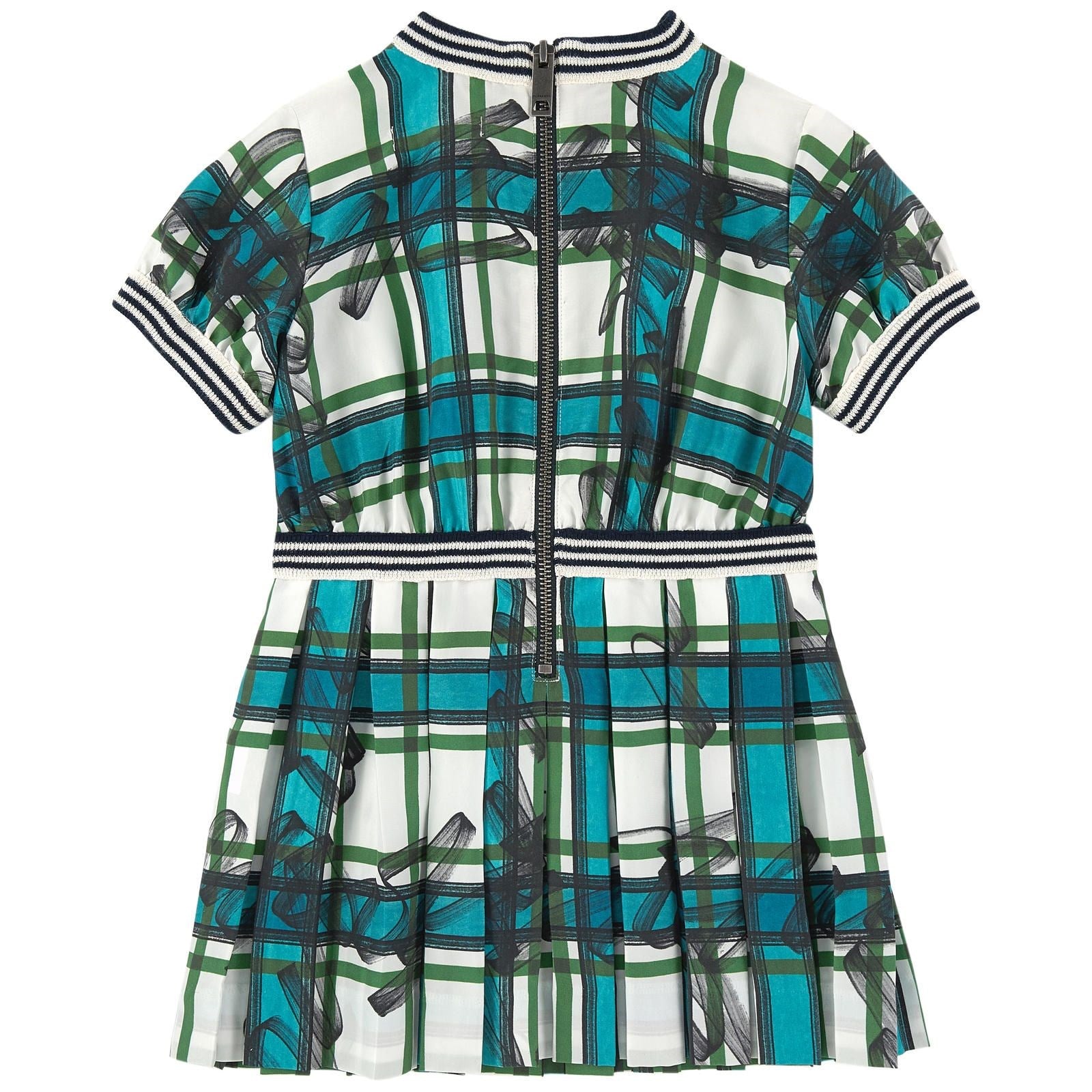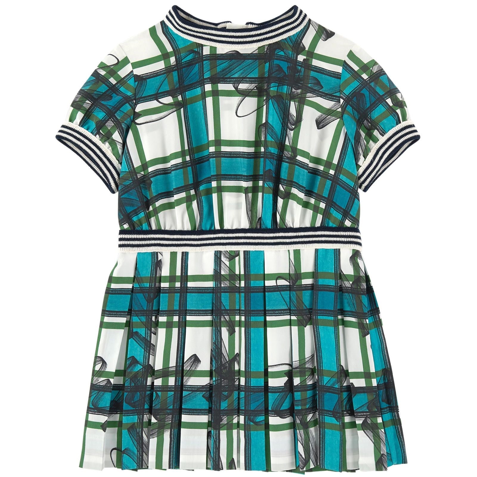 [4/5y] Burberry Scribble Check Silk Dress - Aqua Blue