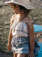 Adorable girls' aztec print BONBON 100% cotton mini skirt with elasticized waistband.