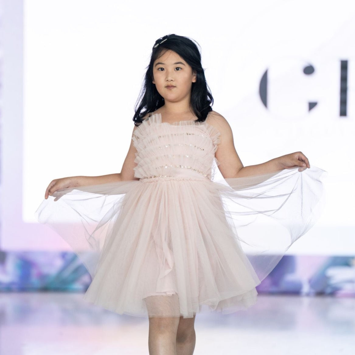 Introducing the enchanting Tutu du Mode dress - a symphony of ethereal elegance that seamlessly fuses the realms of fashion and fantasy. A vision of timeless beauty, this pink masterpiece transports you to a world of soft dreams and graceful allure.