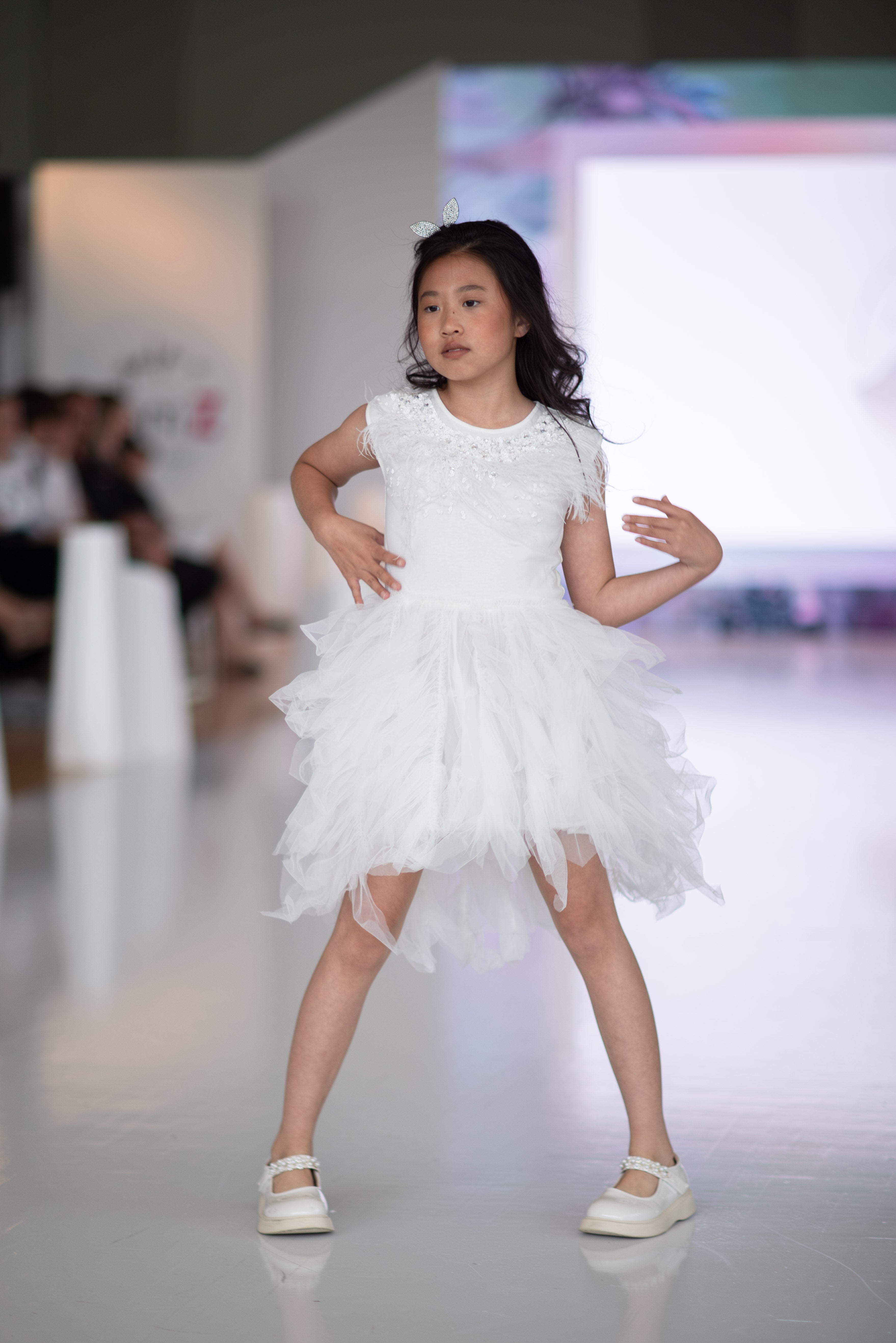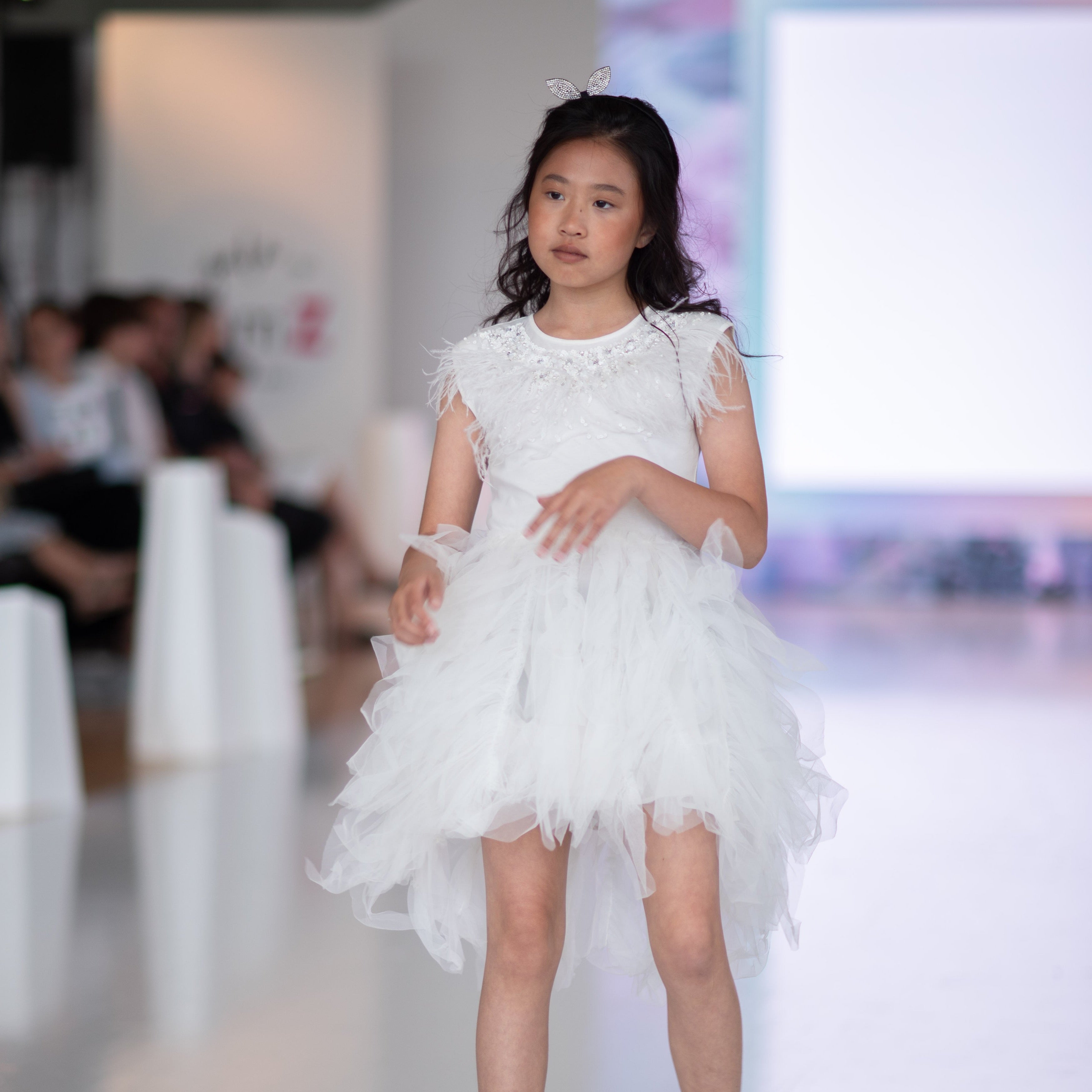[8/9y] Tutu Du Monde White Feather Sleeveless Tulle Dress