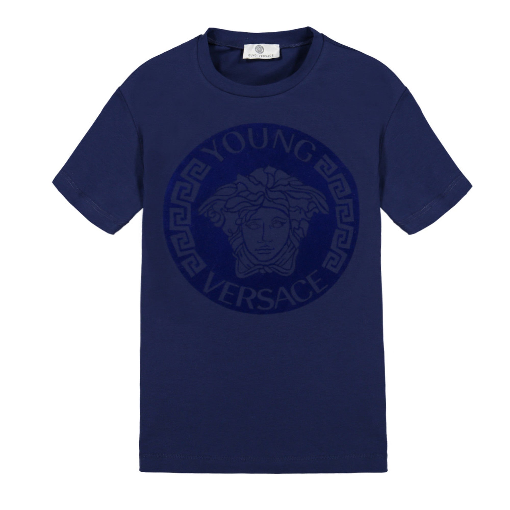 [4y] VERSACE Boys Blue T-shirt with Medusa Logo and Greek Fret Pattern