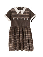 [5-7y] Brown Check lines Dress