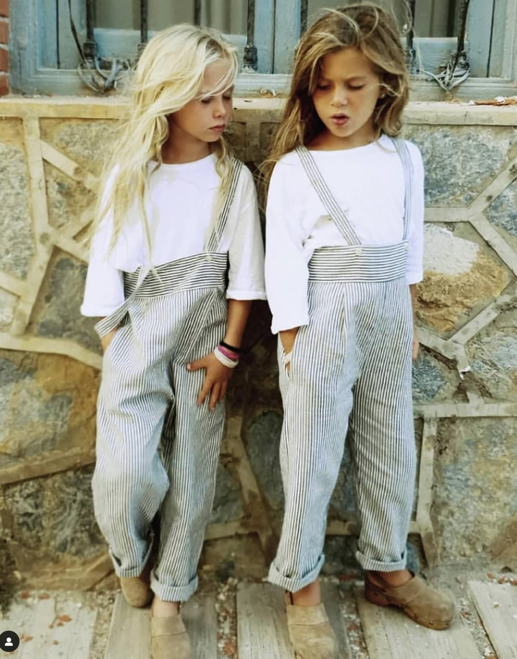 This is one of our favourite EVER - pieces in our collection. We are lucky to have a highly sought after size 4y in these. You can also but it as size larger and grow with the dungaree. We've done this! Best of all, this piece can even be worn as quarter length pant in the Summer or Fall! We've done it all - over a tee, over a sweater - cardigan over it....you name it, this is it! Will be her favourite pant hands down. Tocoto Vintage, created out of a designer's love for her children, the sea, and Formentera Island, features garments with a weathered, dusty aesthetic. Colors of grey, taupe, pink and blue blend together in hoods, lace edgings, and mini jerseys with handmade and vintage effects. The designer sources materials from antique markets, carefully crafting each garment with meticulous attention to detail.