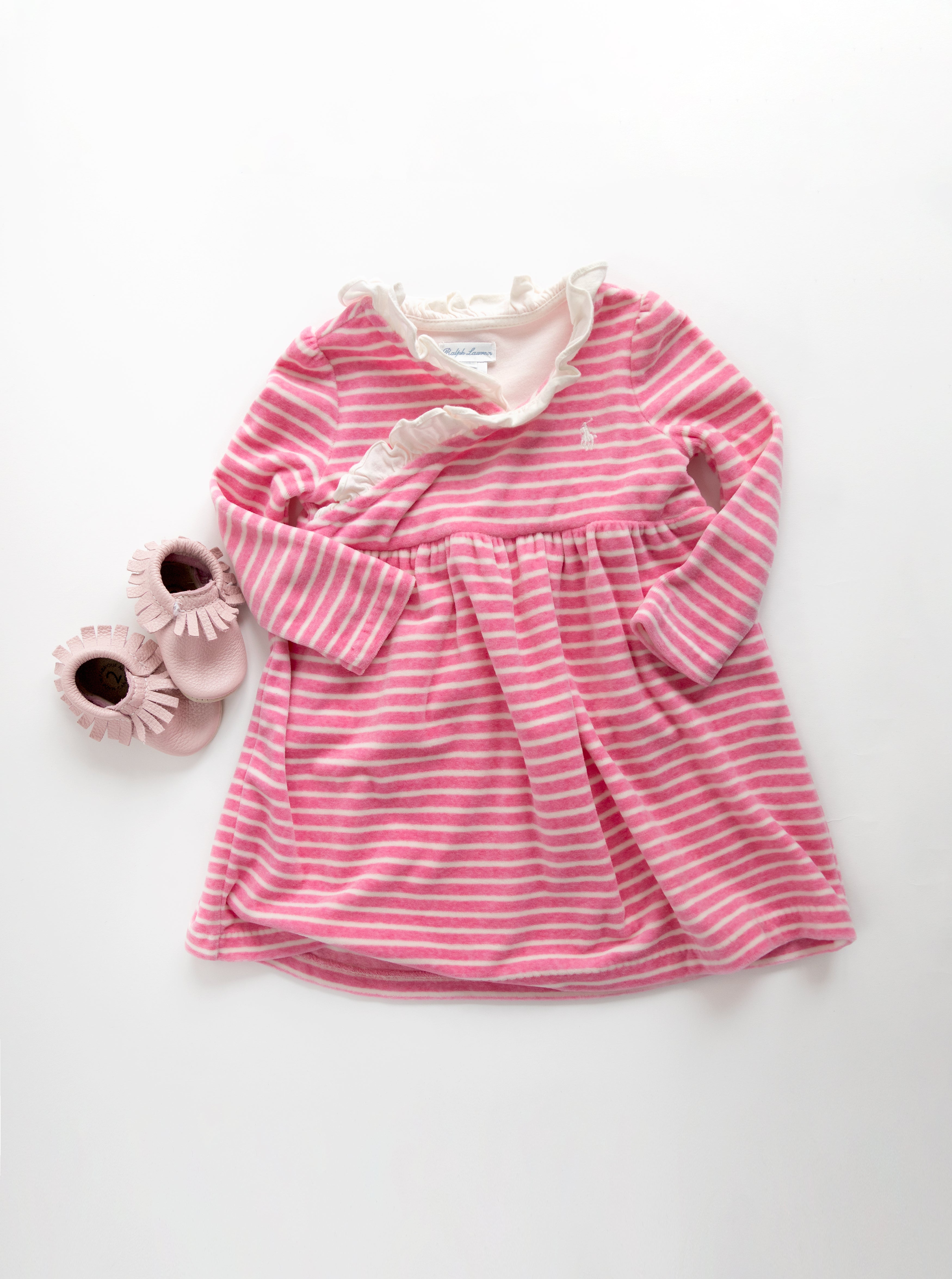 [12m] Ralph Lauren Fleece Long-Sleeved Soft Stripe Dress