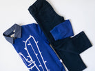 Il Gufo navy cotton trousers with two pockets on the front and two pockets to the reverse. Amazing Il Gufo brand designer quality!