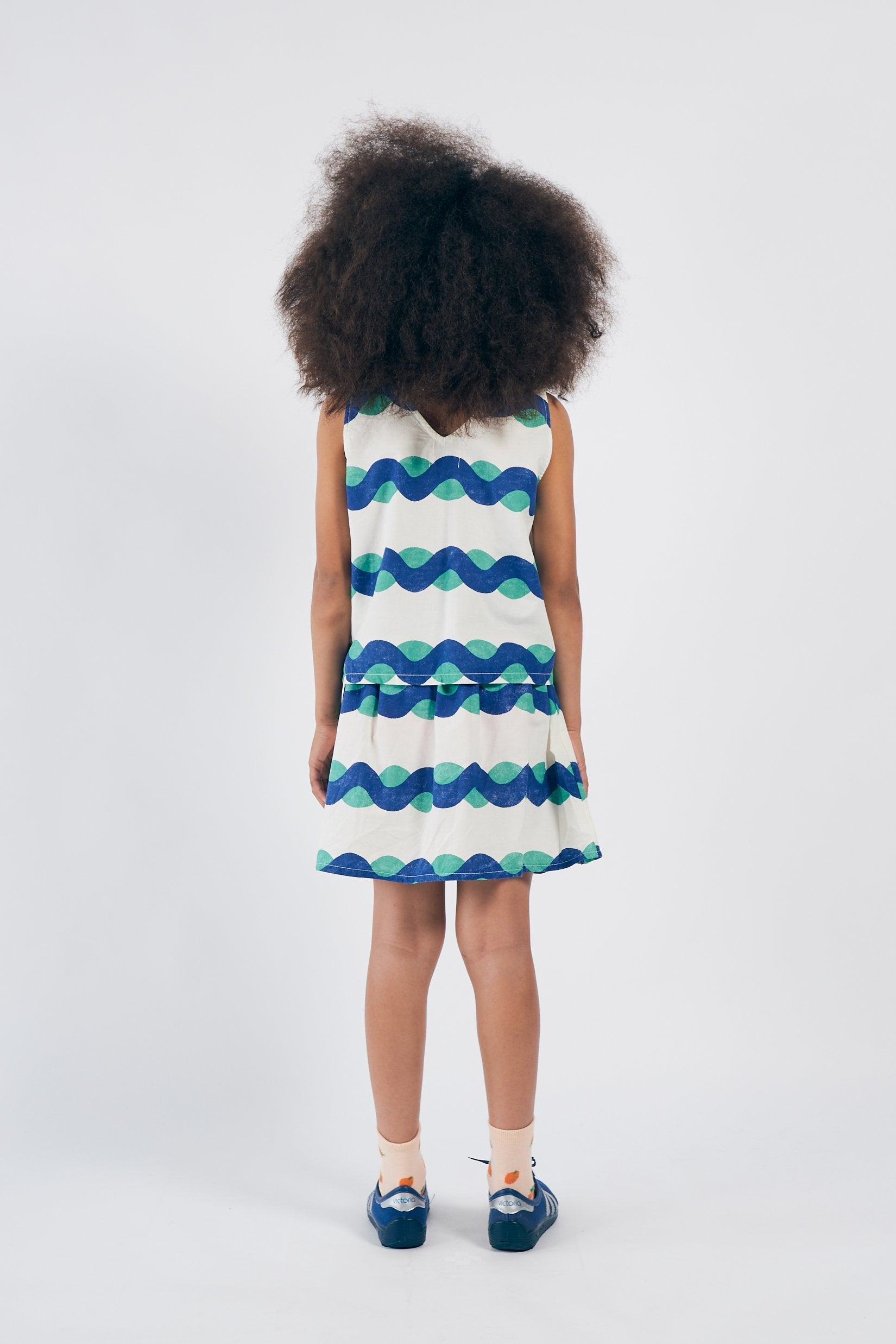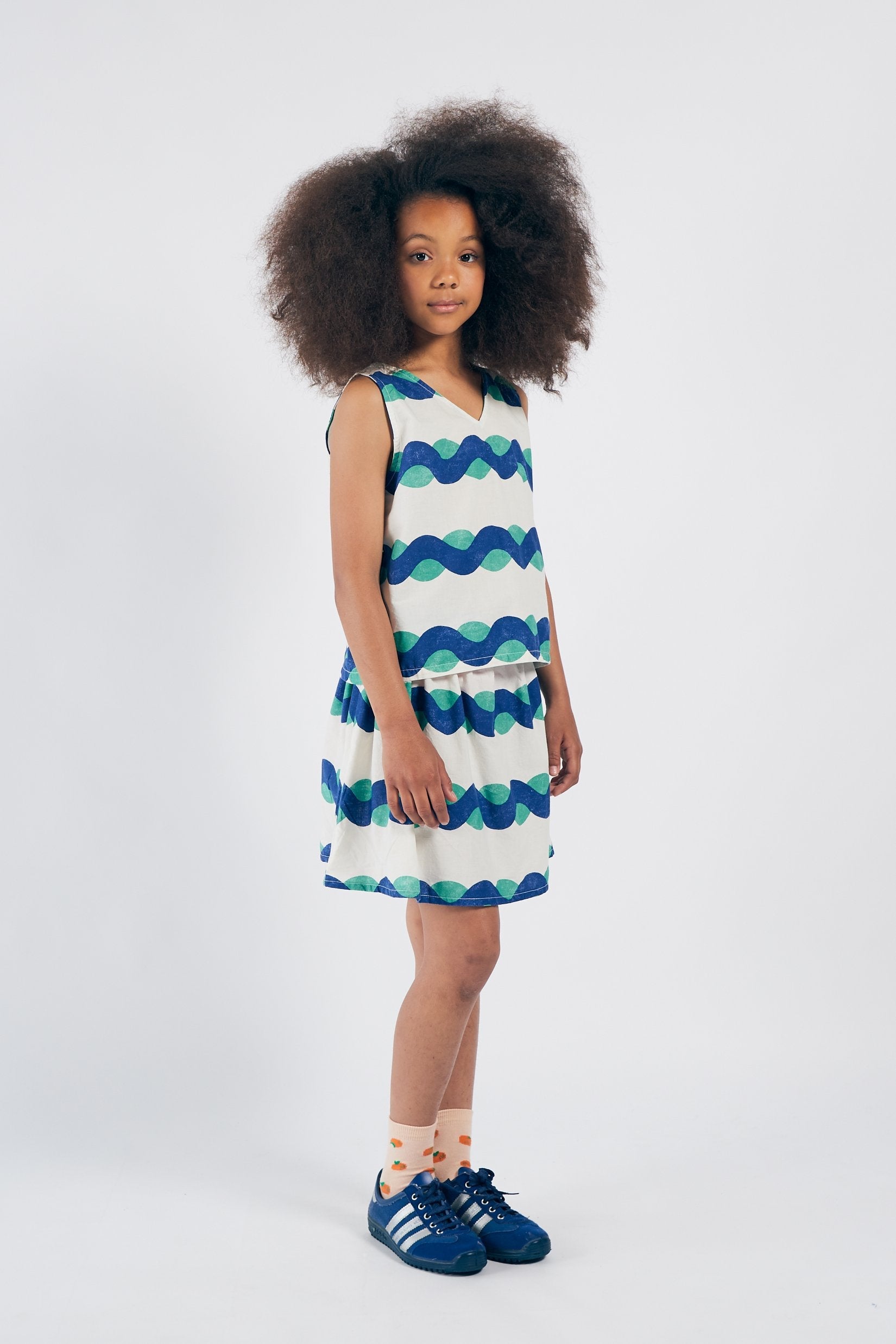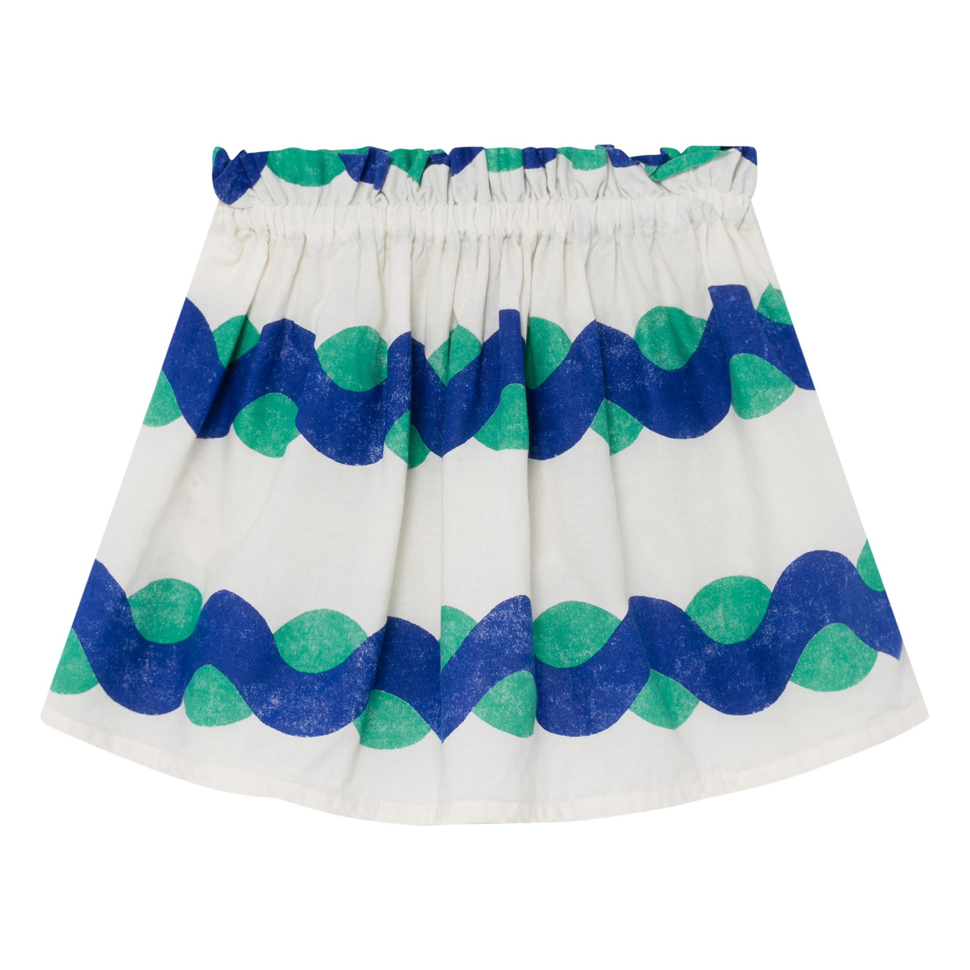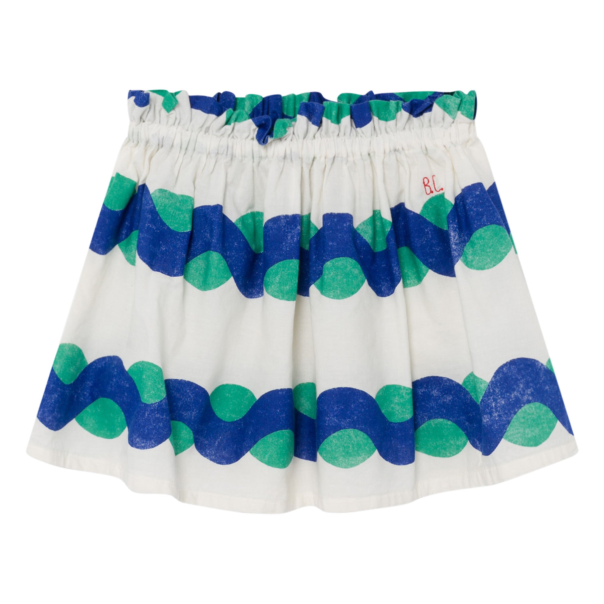 A beautiful and subtly flared skirt featuring a green and blue abstract wave print. 100% cotton Designed in Barcelona, Spain Most of Bobo Choses products are eco friendly garment dyed, which gives this unique look and feel to each product. We recommend to washed separately and when dark, do not rub against light surfaces. We recommend to gently hand wash these items inside out in cold water and neutral liquid detergent. Please do not rub when using stain-remover.