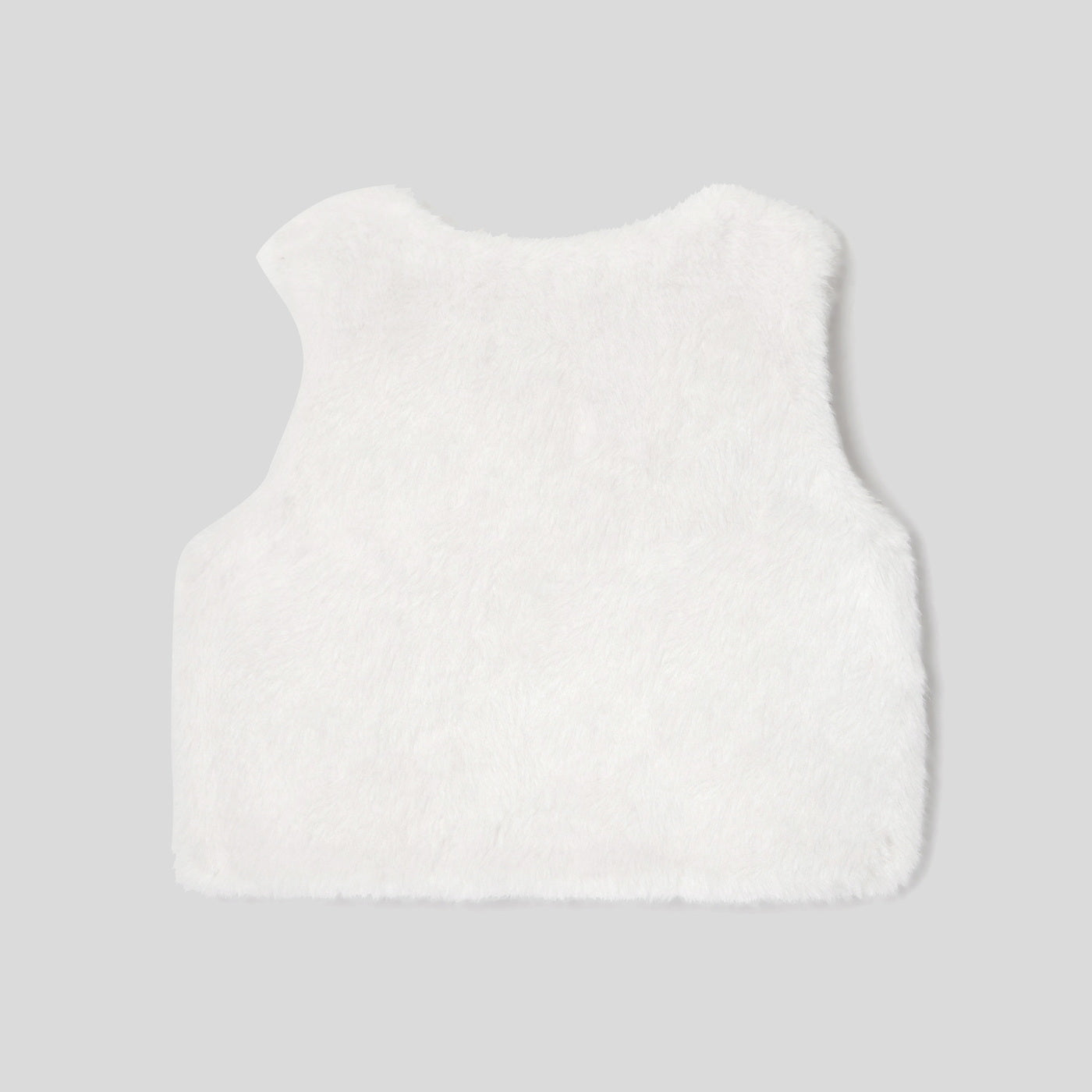 This beautiful baby girls’ cardigan will spruce up her little outfits all season long. It is made with super soft faux fur with a flocked polka dot lining for a touch of modern style. Done in pure white, this cardigan can be worn inside or outside (under a coat) and will go perfectly with our collection of clothing. |