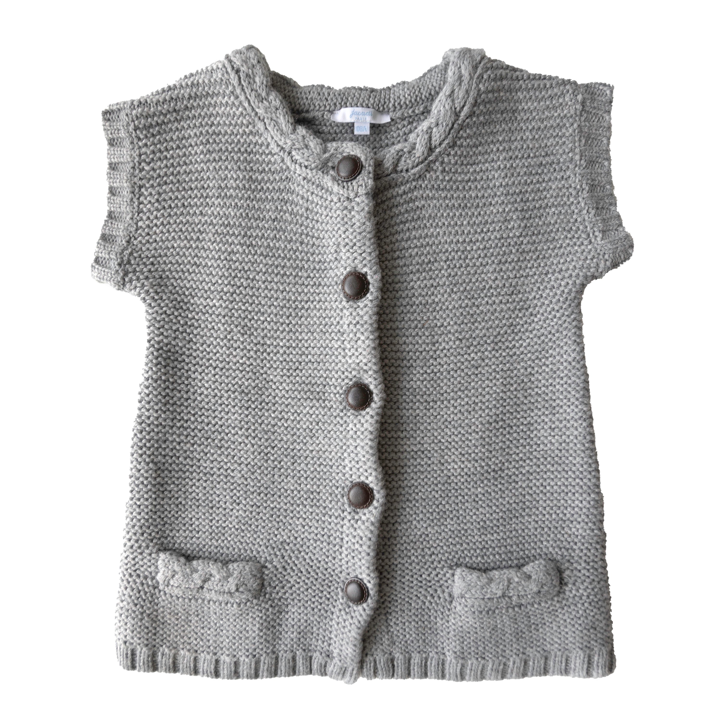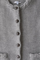Soft wool bend cardigan highlighted with leather type buttons in front and two pockets. Absolutely irresistible over a blouse or even a nice dress. Keeps them cozy and stylish. Your daughter won't want to go without it!
