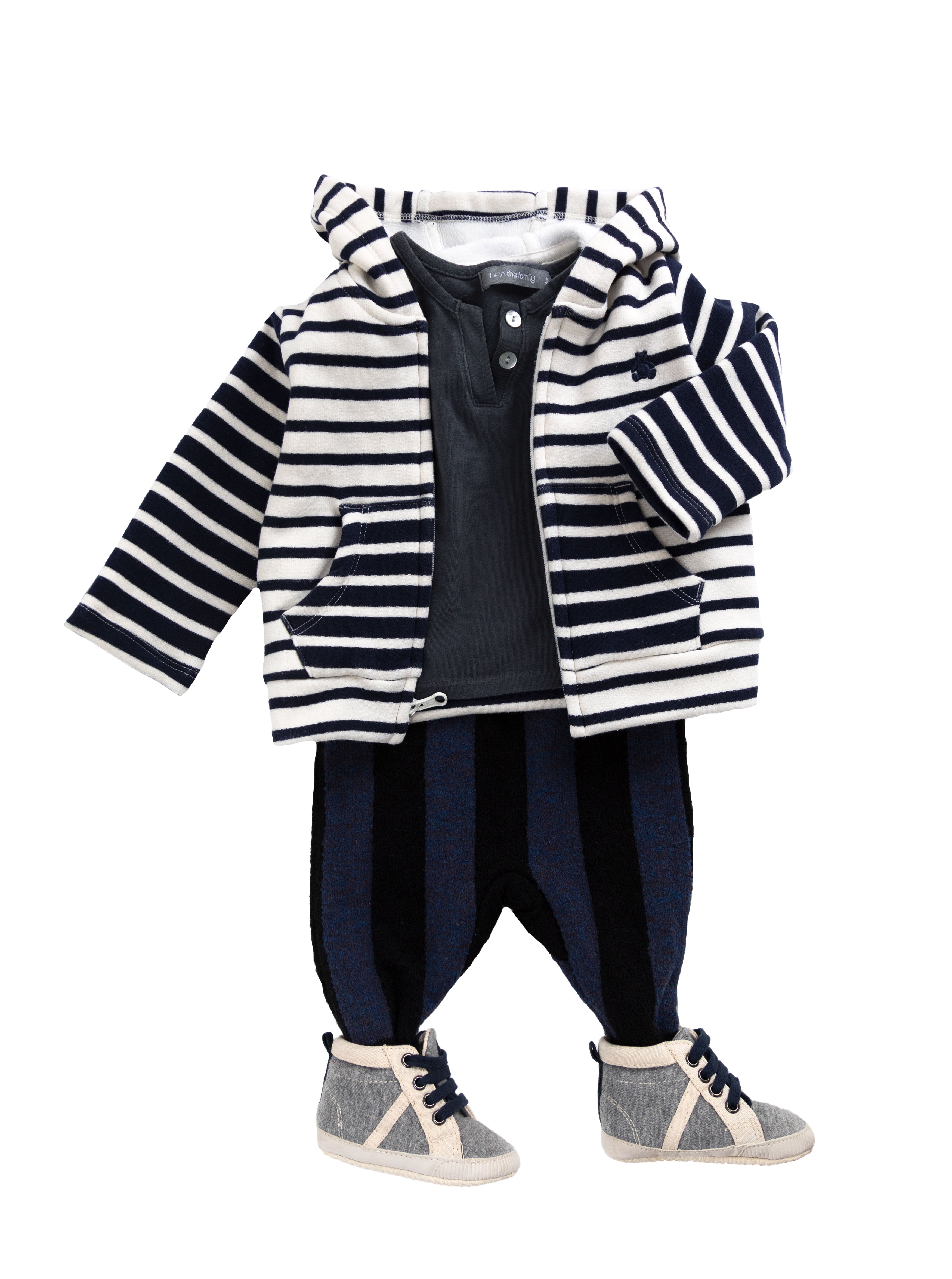 The concept was to create children's collections that only included eco-friendly clothing that was durable and would quickly become must-have pieces. With its eco-friendly philosophy, the brand only uses organic cotton, recycled materials and ensures that its clothes are manufactured in factories that employ socially responsible, ethical practices.