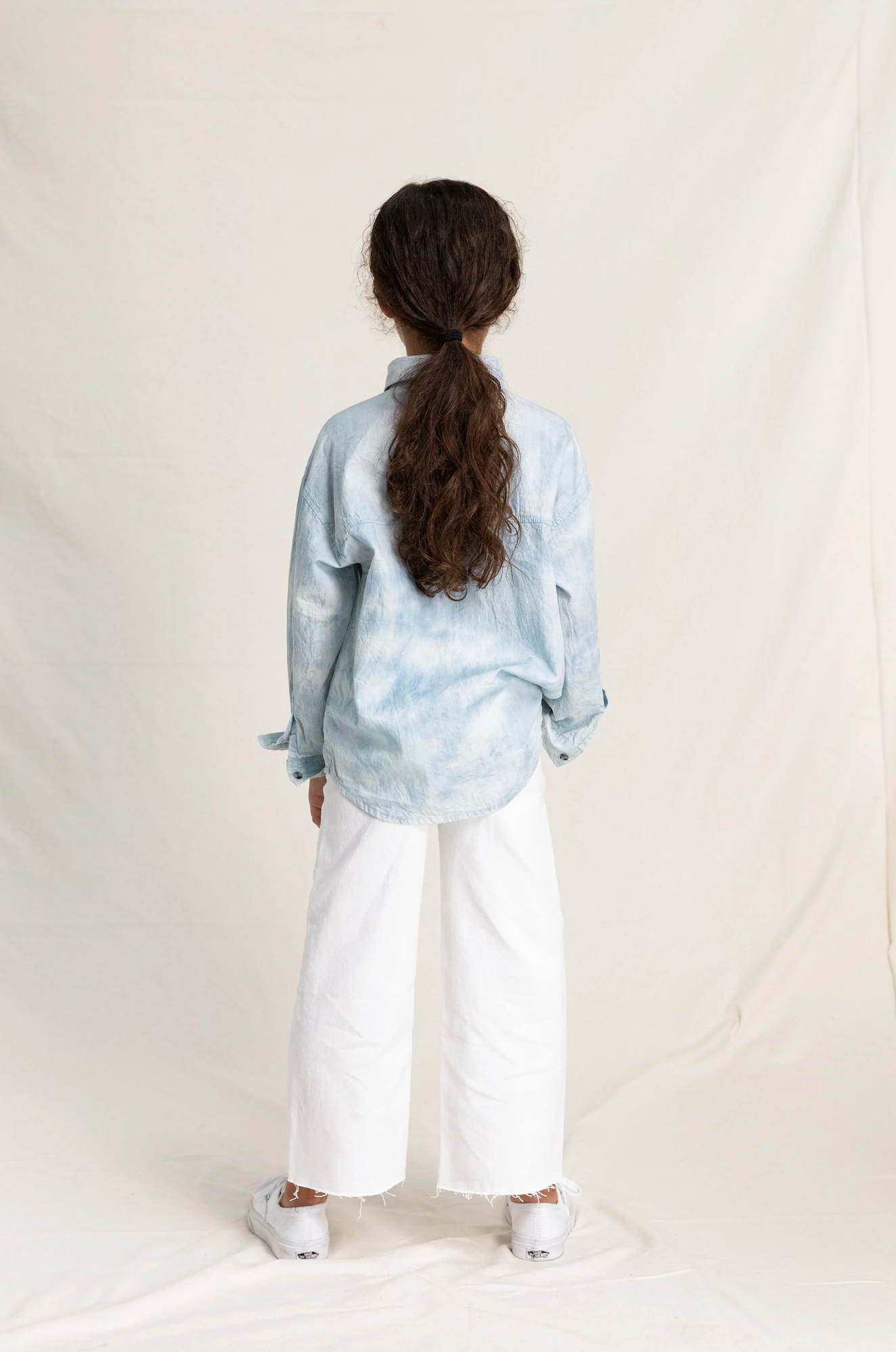 Our white Charlie jeans are high-waisted, wide legged and cropped for a casual yet elegant style. They cut small, so take the size up. Model's height is 168cm and wears a size S.